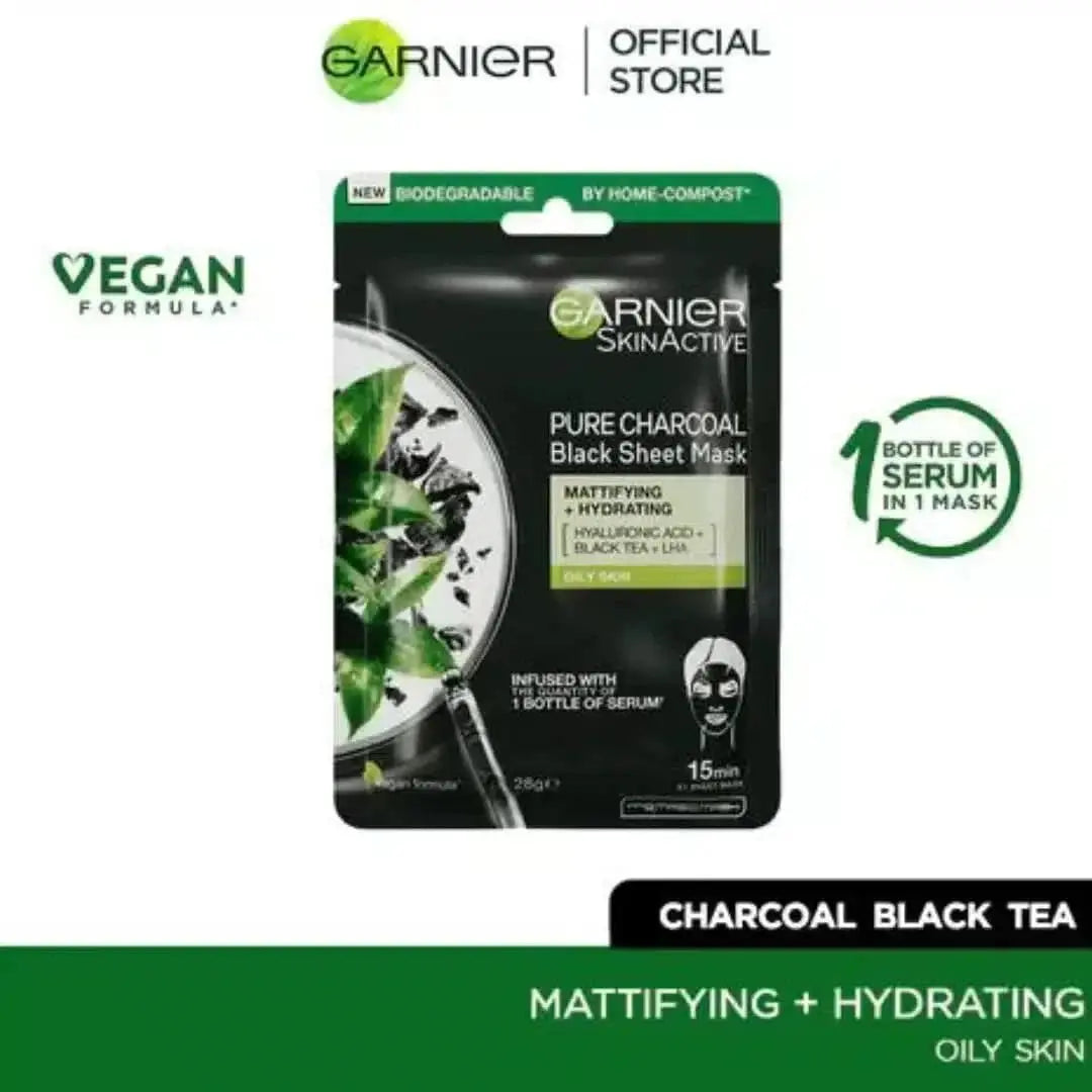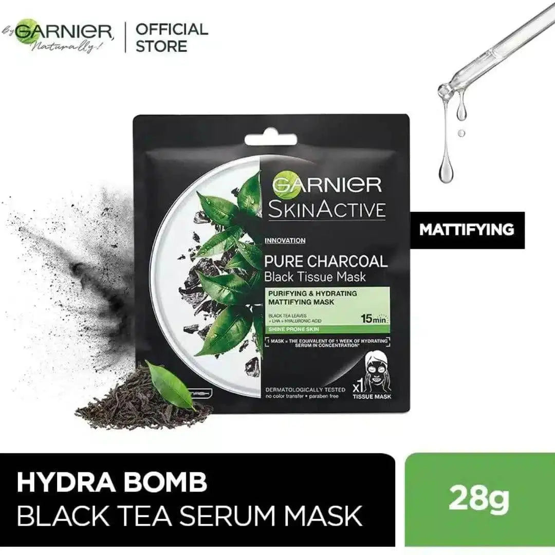 Garnier Charcoal Face Mask - Purifying Black Tea Tissue Mask 28g