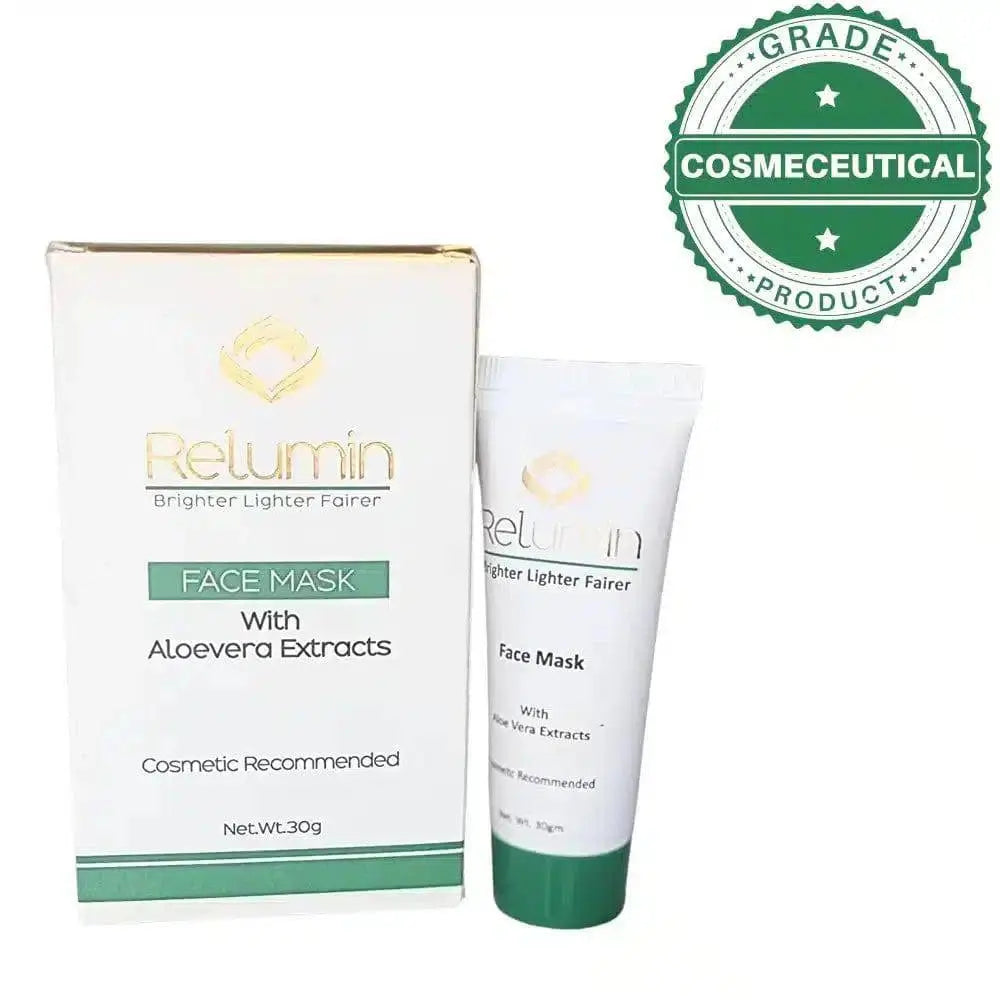 Endorsed by cosmetic professionals, the Relumin Face Mask embodies a perfect blend of nature and science, making it an essential addition to your skincare regimen. Embrace the revitalizing experience it offers and unlock the pathway to a brighter, lighter, and fairer complexion. Discover the transformative potential of this Aloe Vera-infused face mask and let your skin shine with health and vitality.