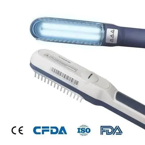 Introducing the UVB Narrowband Phototherapy Lamp, an innovative solution for effectively managing a variety of skin conditions from the comfort of your home. This advanced treatment device utilizes targeted UVB light, delivering therapeutic benefits for conditions such as psoriasis, vitiligo, mycosis fungoides, atopic dermatitis, eczema, acne, and many more. With its specialized comb attachment, this versatile lamp can also focus treatment on specific areas like the scalp, ensuring comprehensive care for your skin.