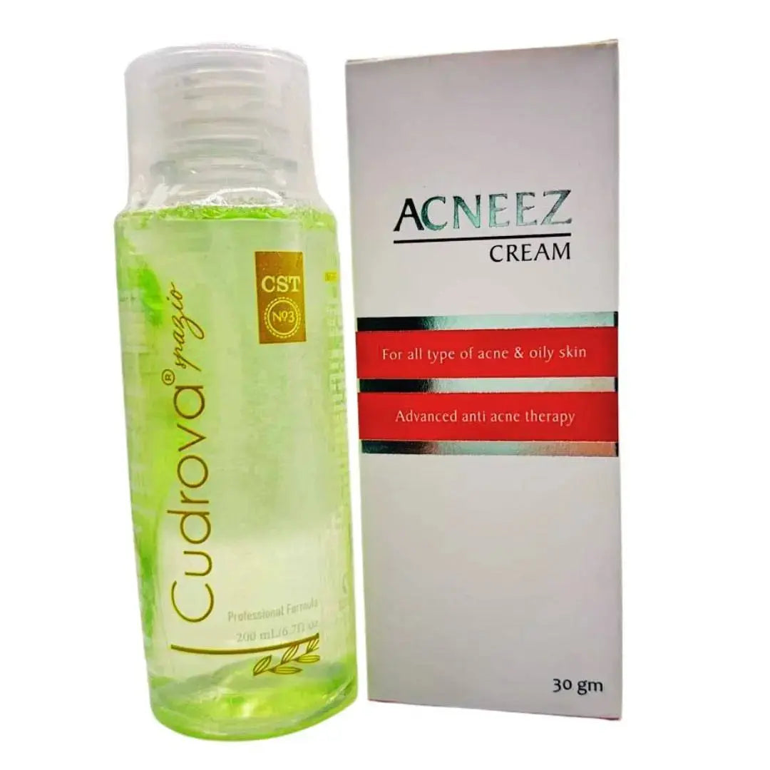 The Acneez Cream is formulated with powerful acne-fighting ingredients that effectively reduce inflammation and clear clogged pores. Complementing this, the Cudrova Toner gently removes impurities, tightens pores, and balances the skin’s pH level. Together, they create a comprehensive acne care routine that promotes clearer, healthier skin.