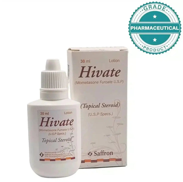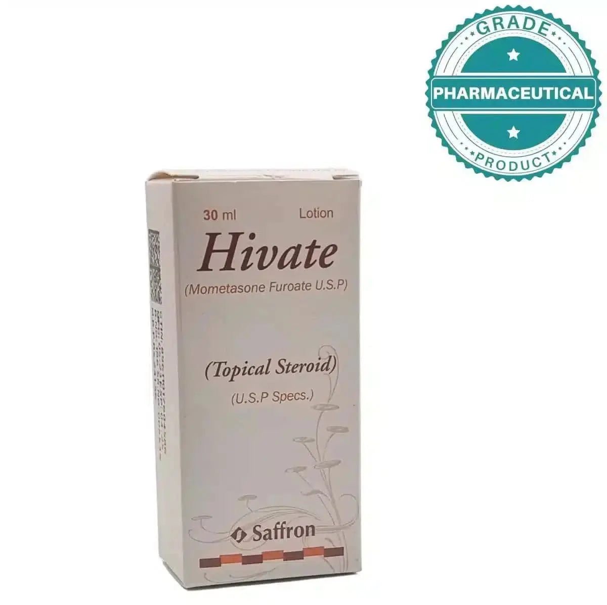 Hivate Lotion is a highly effective skin treatment meticulously crafted to address a variety of skin conditions, including eczema, psoriasis, and dermatitis. Infused with 0.1% w/w Mometasone Furoate, this powerful corticosteroid works diligently to relieve inflammation, redness, and irritation, making it an essential addition to your skincare routine.