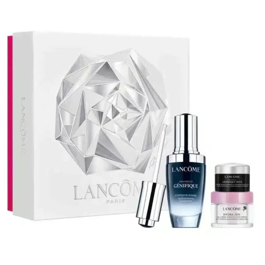 - **Advanced Génifique Sensitive Sérum (10ml)**: This lightweight, fragrance-free serum is a powerhouse of skin-loving ingredients, combining prebiotics and probiotics to fortify your skin's barrier. It effectively diminishes the appearance of fine lines and wrinkles, leaving your skin feeling smoother, plumper, and revitalized. Experience the joy of a visibly healthier complexion as this serum works to restore your skin's youthful vitality.