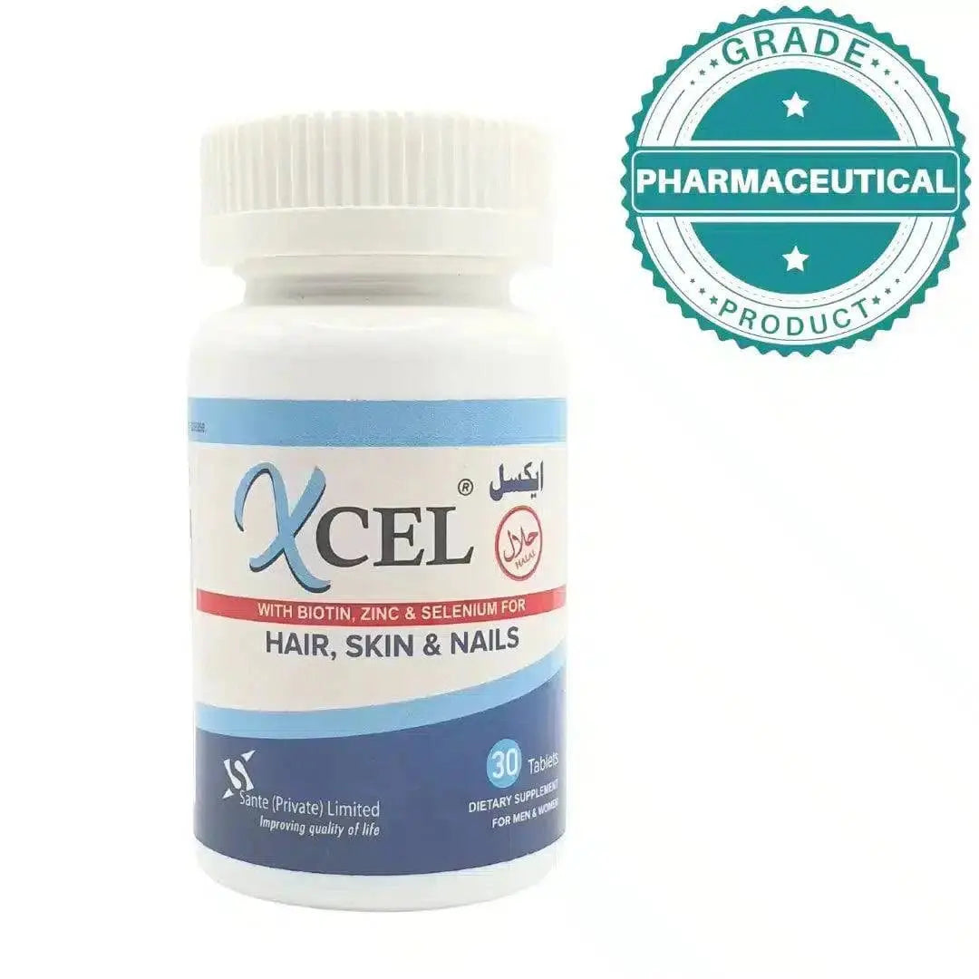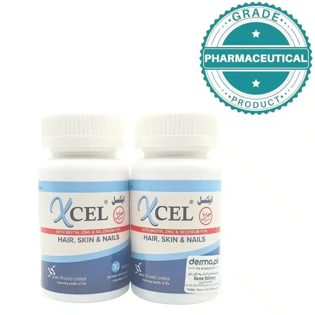 Trust Xcel Hair, Skin and Nails Supplements to provide the essential nutrients your body needs for a beautiful, radiant appearance. For any inquiries, feel free to reach out to us at info@dermatologists.pk. Elevate your beauty and wellness routine today with this thoughtfully crafted supplement!